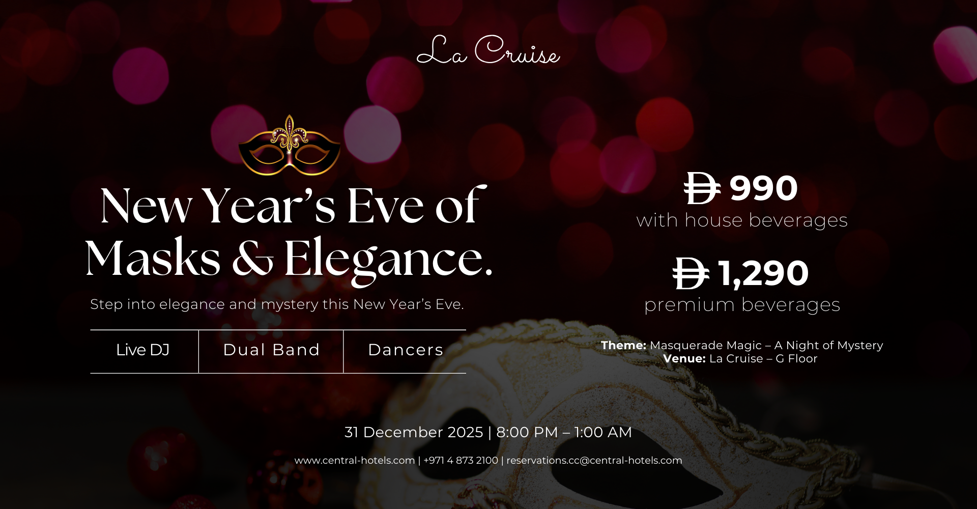 New Year’s Eve Gala Dinner Canal Central Hotel Business Bay